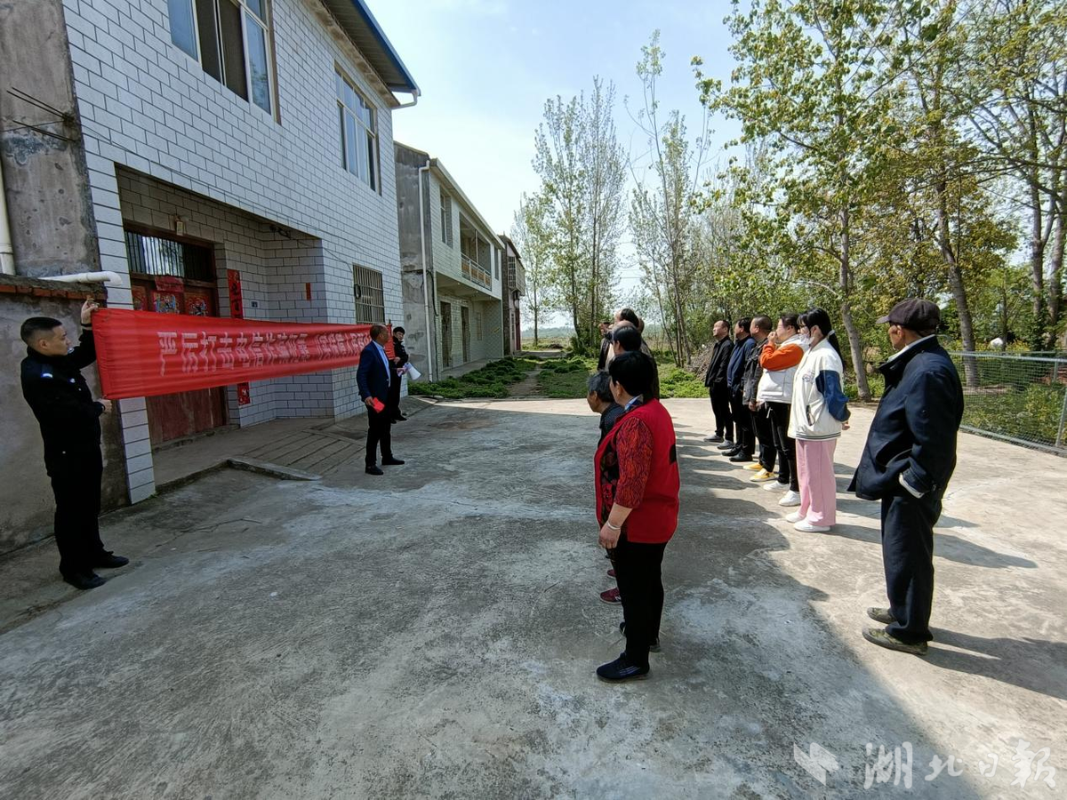“打击电诈我支持、治理电诈我参与,远离电诈我宣誓,打不尽豺狼决不下战场!”4月10日,在孝昌县花西乡联乐村,慷慨激昂的宣誓声音响彻整个村湾。由花西乡综治办、司法所、派出所、应急办、村党员代表、群众代表等二十余人共同参加的境外涉诈滞留人员声讨大会在这里举行。