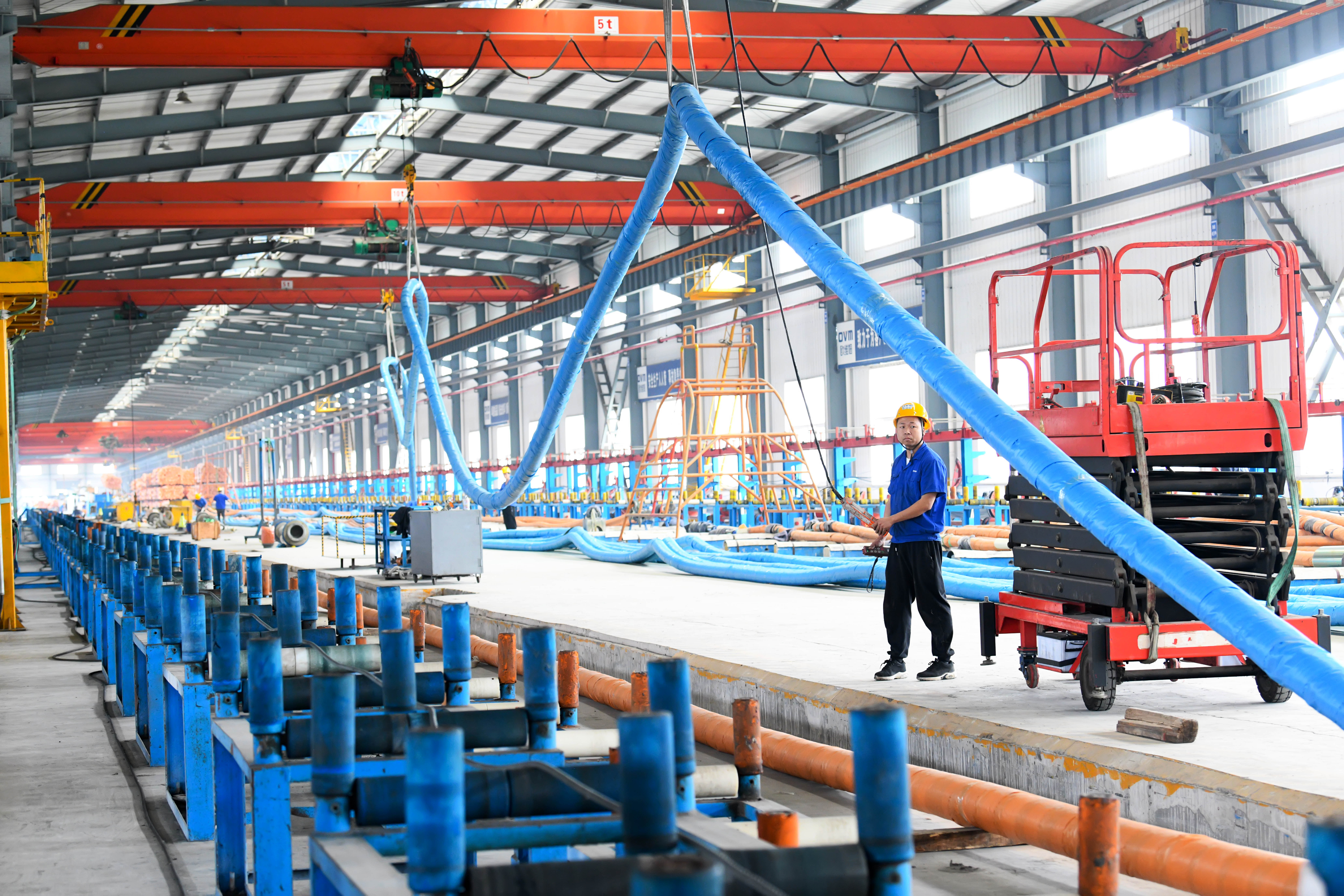 走进湖北欧维姆缆索制品有限公司二期钢绞线厂房,只见工人正在争分夺秒地调试新产线。
