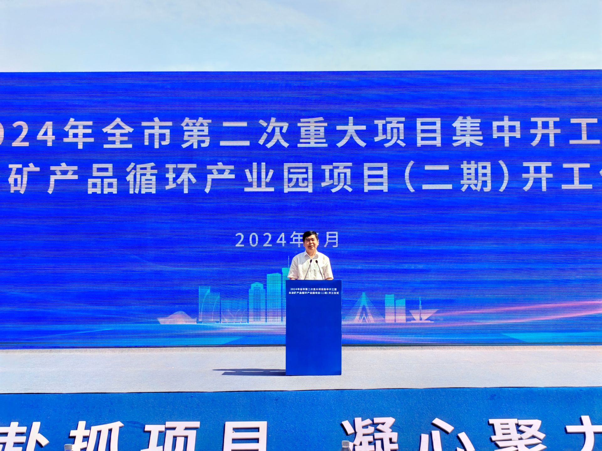 市领导江龙平、纪春明参加活动。市委常委、市委统战部部长李祥坤主持仪式。副市长乐晗介绍了2024年全市第二次重大项目集中开工情况。