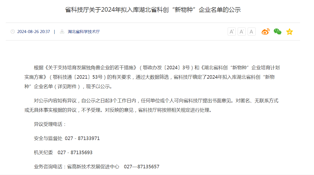 湖北日报客户端讯(通讯员徐俊)近日,省科技厅发布2024年拟入库湖北省科创“新物种”企业名单,阳新县湖北远大生物技术有限公司等6家企业入选湖北省科创“新物种”瞪羚企业。目前,我县入选湖北省科创“新物种”企业累计达19家。