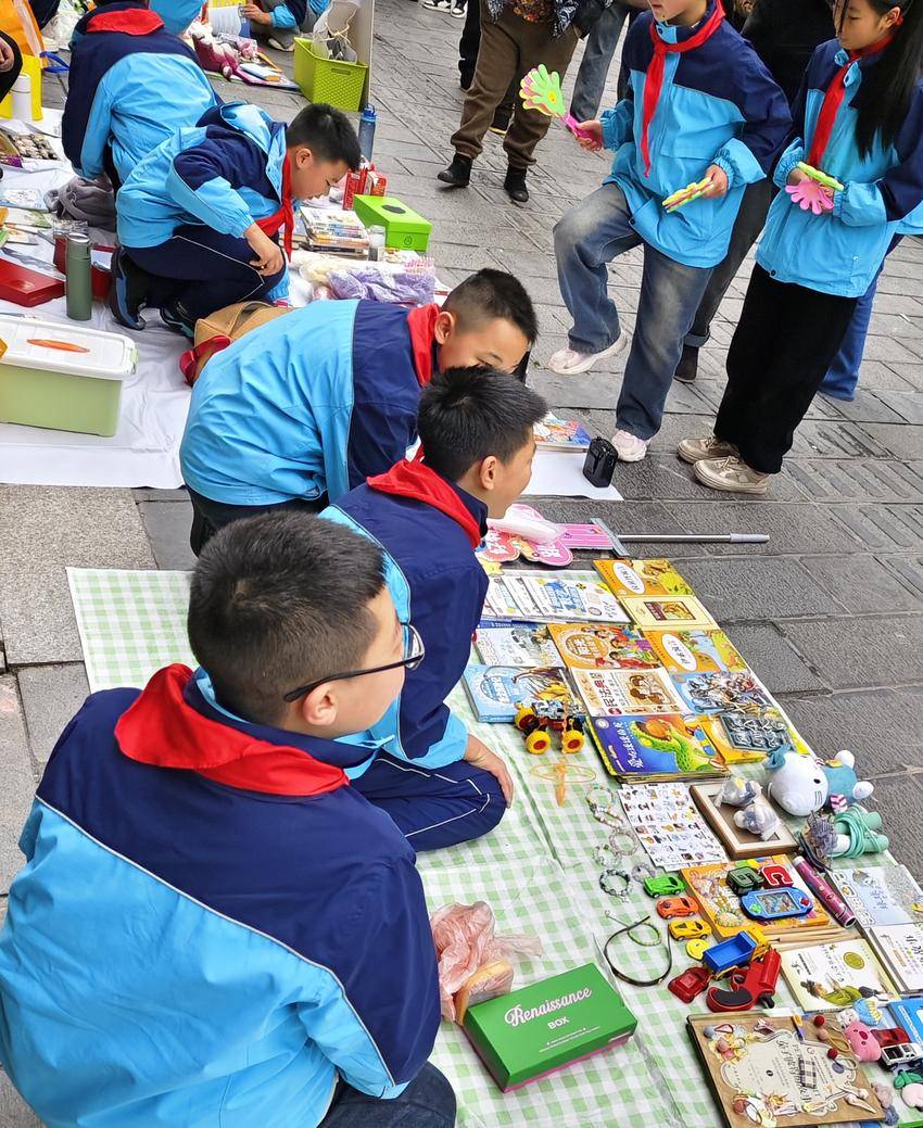 活动现场,孩子们摇身一变,成为一个个精明的“小商人”。摊位上摆满了琳琅满目的商品,从闲置的书籍、文具,到心爱的玩具,应有尽有。孩子们热情地招揽顾客,耐心地介绍商品,还认真地讨价还价。他们稚嫩的脸上洋溢着自信与兴奋,那股认真劲儿让人忍俊不禁又心生敬意。
