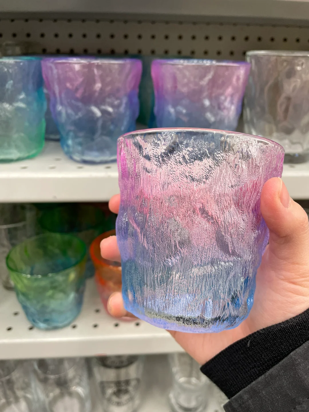 有彩色的冰川杯,颜值非常高的水晶玻璃杯,但是奉劝大家网上很便宜的这种彩色玻璃杯千万不要买。