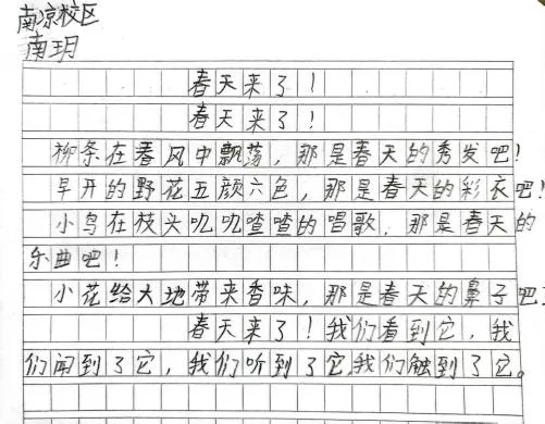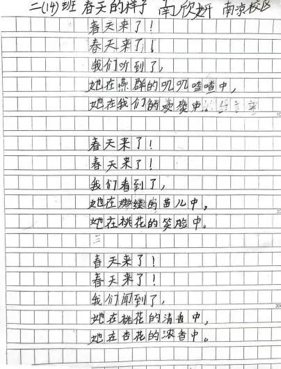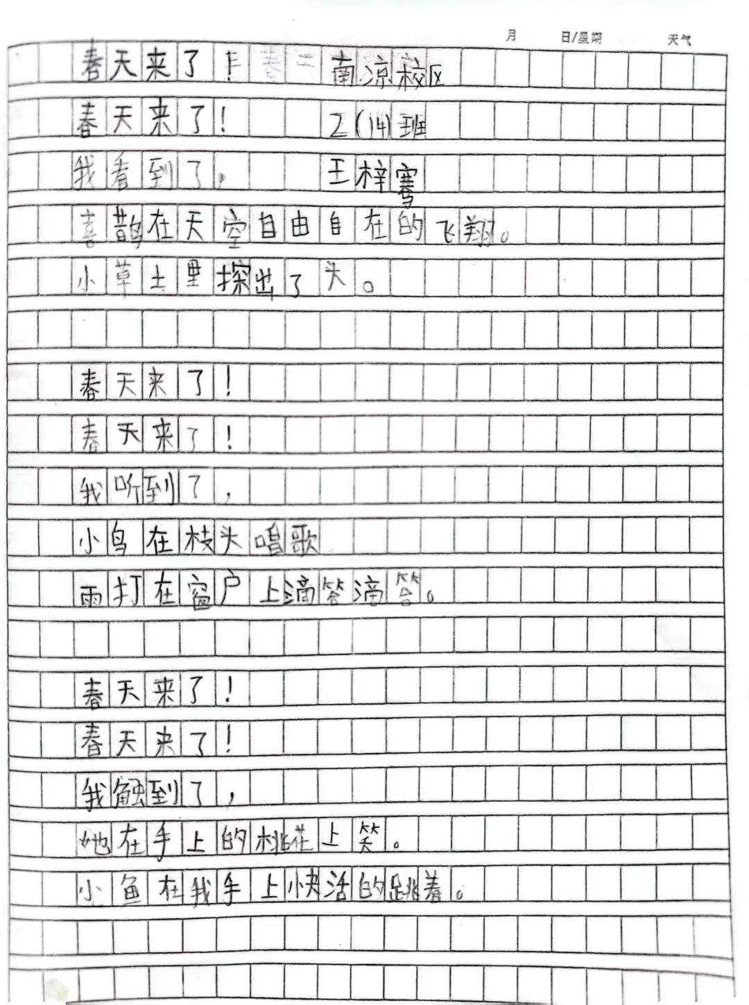 二年级的同学们则挥毫泼墨,以书法创作的形式展现春天的诗意与美好。他们用笔尖勾勒出一幅幅春天的画卷,字迹优美,情感真挚,让人陶醉其中。