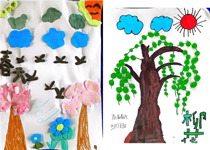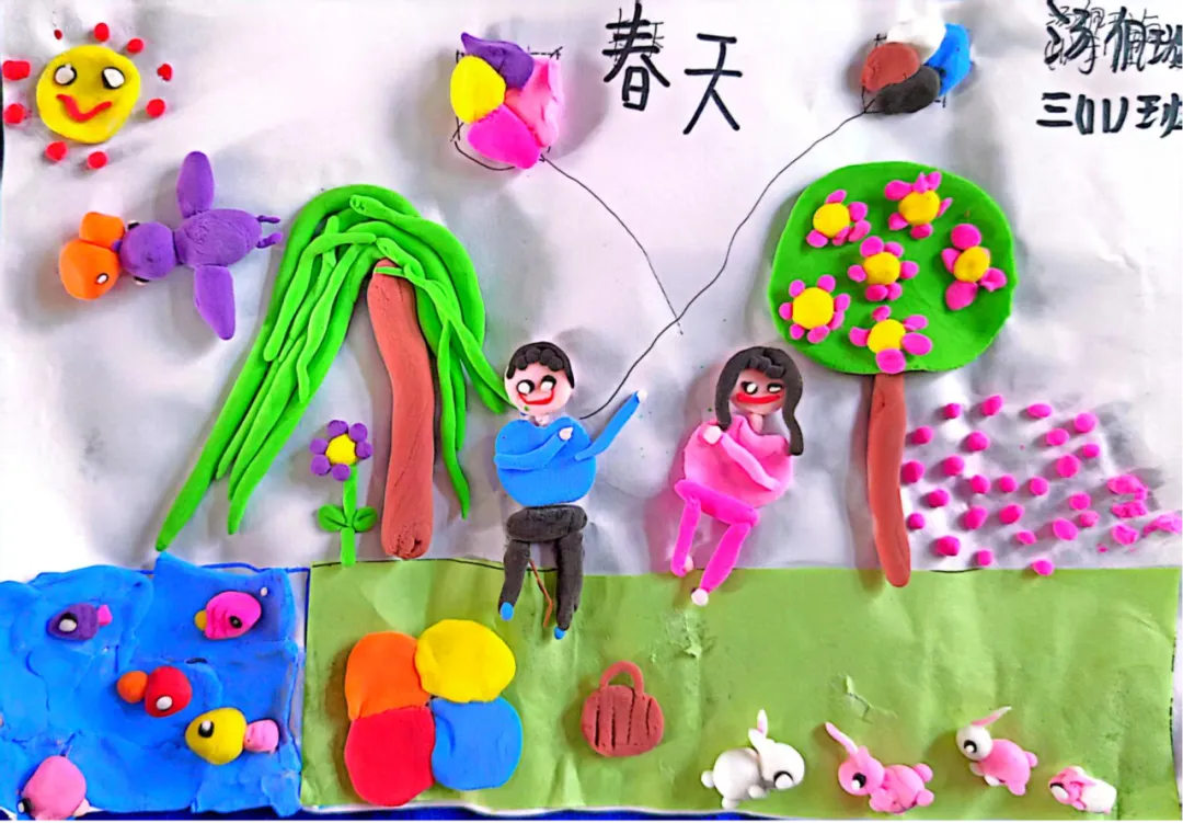 三年级的同学们动手制作了与春天相关的手工作品,纸艺、黏土等材料在他们的巧手下变成了花朵、小鸟、春风等象征春天的元素,每一件作品都充满了创意和巧思,让人眼前一亮。
