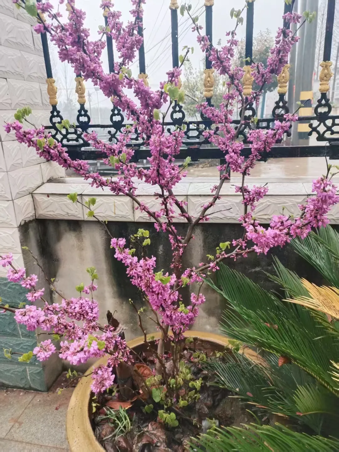 春意盎然,紫荆花盛开,粉紫花朵点缀枝头,装点小院角落,传递春的暖意。