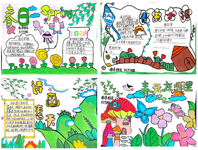 六年级的同学们以绘画的形式描绘了他们心中的春天。多种绘画形式被他们运用得淋漓尽致,一幅幅色彩斑斓、生动形象的春天画卷在他们笔下跃然纸上。