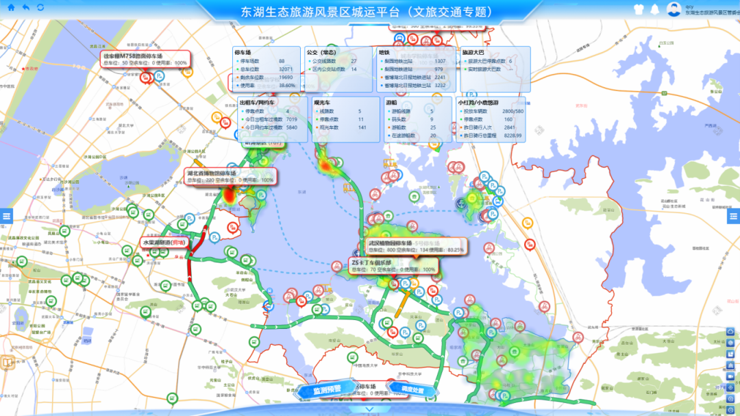 此外,在东湖绿道入口文旅联勤服务站指挥中心,管理人员通过“交通要素一张图”直观掌握全局,快速发现拥堵路段并调度疏导;游客则可通过“云上东湖”小程序,实时查询停车场空余、推荐最佳路线,实现“智慧出行”。