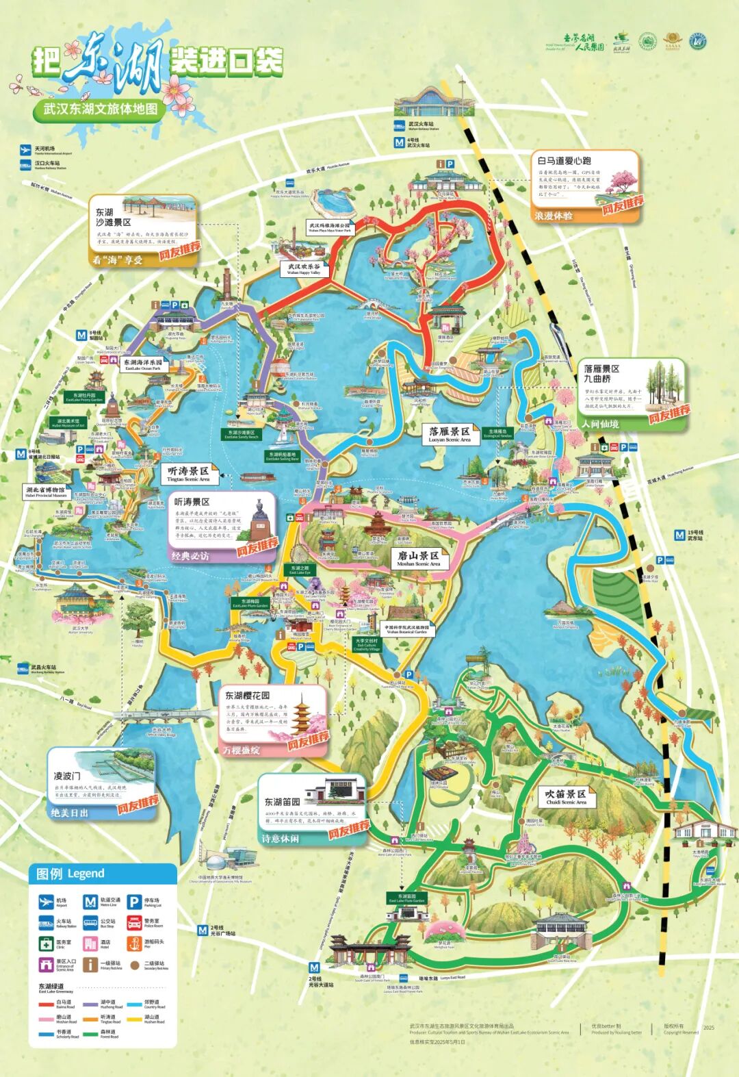同时东湖风景区文旅局编印全新文旅地图,推出国庆文旅活动攻略和宣传海报,引导游客错峰分流,通过景区电子大屏提示游客文明出行。