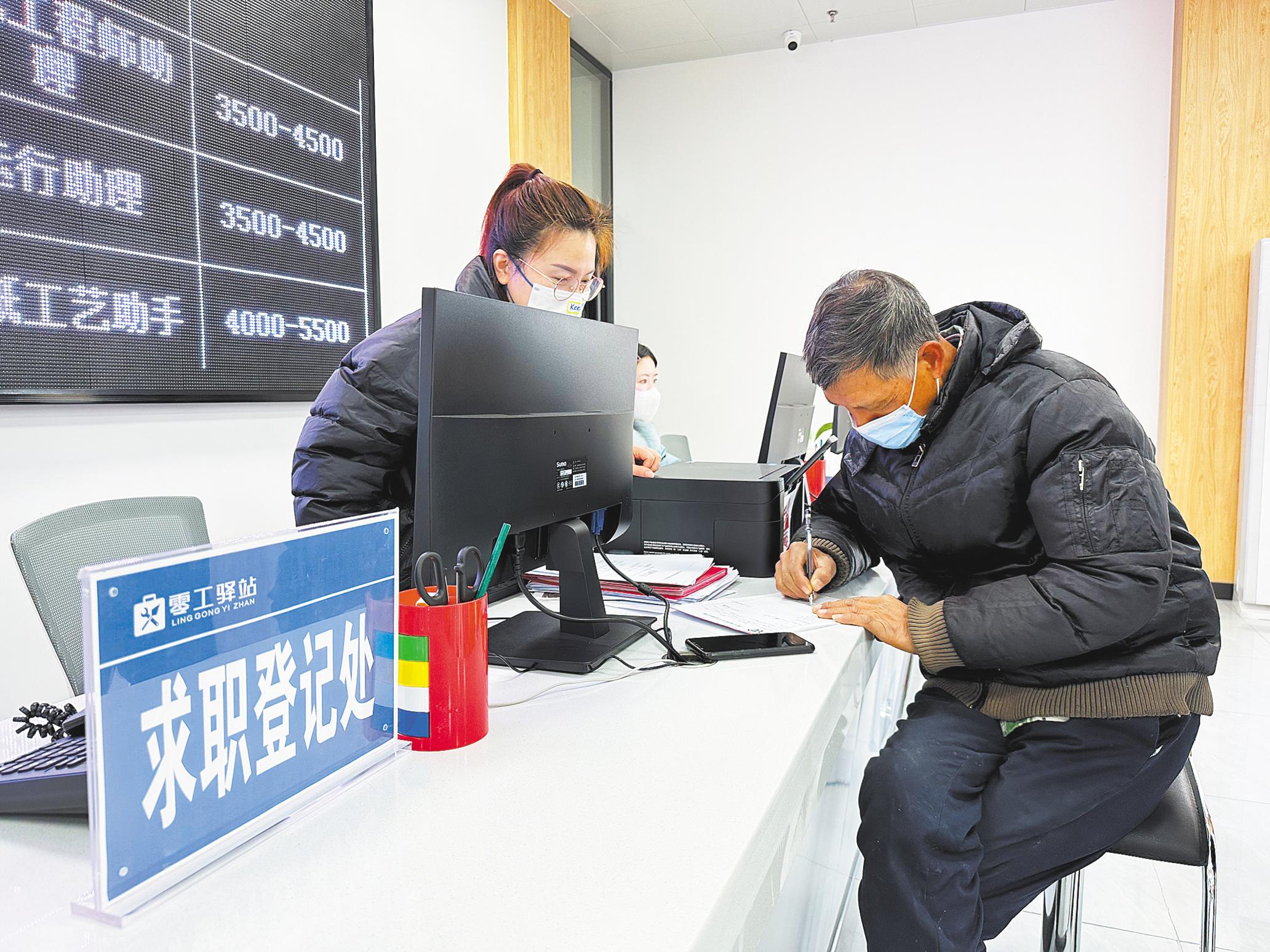 12月14日,求职者在书院街道零工驿站填写就业意愿登记表。 (湖北日报全媒记者 刘宇 摄)