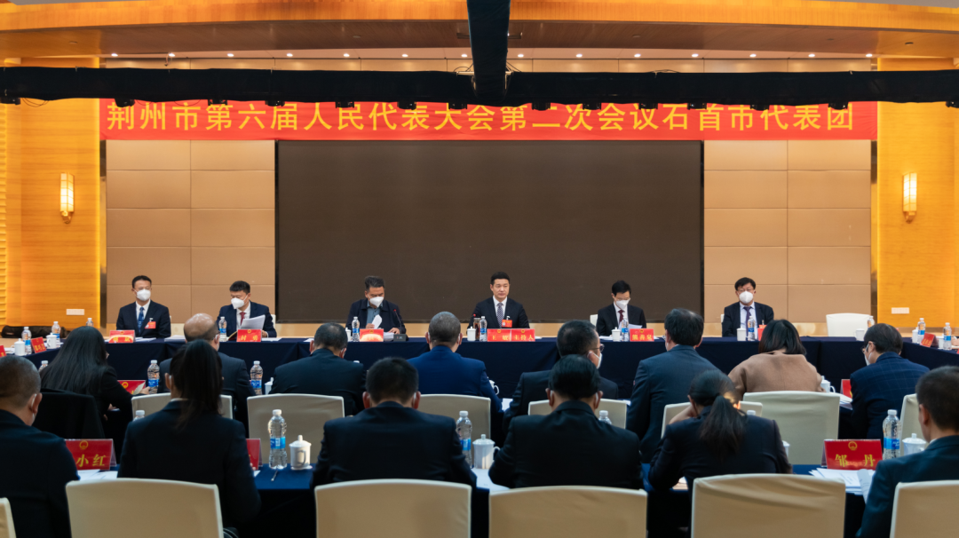 荆州市人民政府市长周志红在荆州市第六届人民代表大会第二次会议上作《荆州市人民政府工作报告》。随后,石首代表团在驻地召开会议审议报告,为荆州高质量发展献计献策,共话石首发展大计。