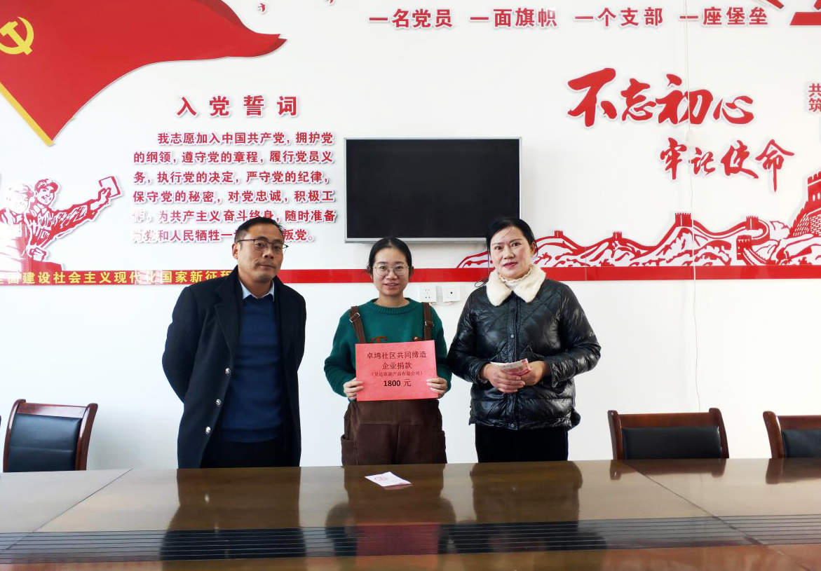 湖北日报讯 (通讯员李婕 李梦)“共同缔造是大家的事,我们也是社区一份子,理应尽一份微薄之力。” 2月4日,安陆市经济开发区卓塆社区爱心企业昊达农副产品有限公司向社区捐资支持共同缔造建设。