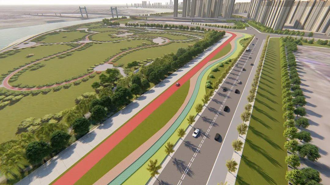 汉江南岸综合治理EPC工程综合防洪、景观、市政等功能为一体,主要包含知音大道建设、防洪工程改造及汉水碧道工程三个板块。完工后将串联起过江桥梁,有效承担沿江交通分流作用,并与长江沿岸的杨泗港都市T台一同打造全市最长、景观最美的滨江景观廊道。落实“长江大保护”,突出水、岸、滩、城、人和谐共生的有机载体目标。