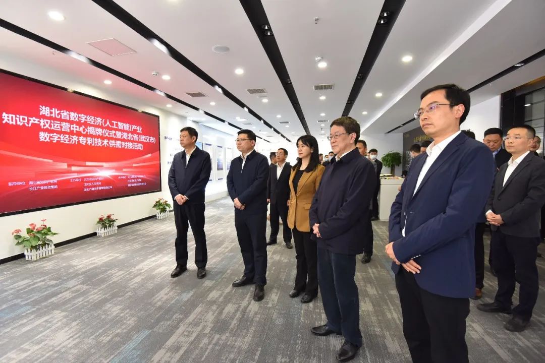 当天,省知识产权局局长刘治田、市知识产权局二级巡视员陈保国、江汉区委书记李湛、江汉区人民政府区长叶文静、副区长余建清等领导及长江产业集团副总经理马恒出席了揭牌仪式。市、区相关职能部门负责人、企业代表、银行、法律、知识产权等金融及服务机构代表一百余人,共同见证全省数字经济产业知识产权的保护运营翻开新篇章。