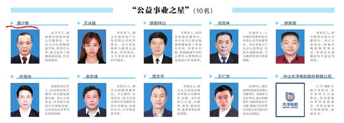 湖北日报讯(通讯员王先忠)2月8日在孝感市三级干部大会暨深入优化营商环境大会上,中共孝感市委、孝感市人民政府授予谭少群等10名个人和企业孝感市“公益事业之星”称号、余友华等20名个人孝感市“回归创业之星”称号。其中,汉川4人分获得“公益事业之星”“回归创业之星”称号,谭少群(福星集团控股有限公司董事长)获“公益事业之星”;吕良杰(汉川浙商产业园建设发展有限公司董事长)、余连元(湖北迈可瑞汽车部件有限公司总经理)、王华斌(湖北省琨鹏水产养殖专业合作社理事长)获“回归创业之星”。