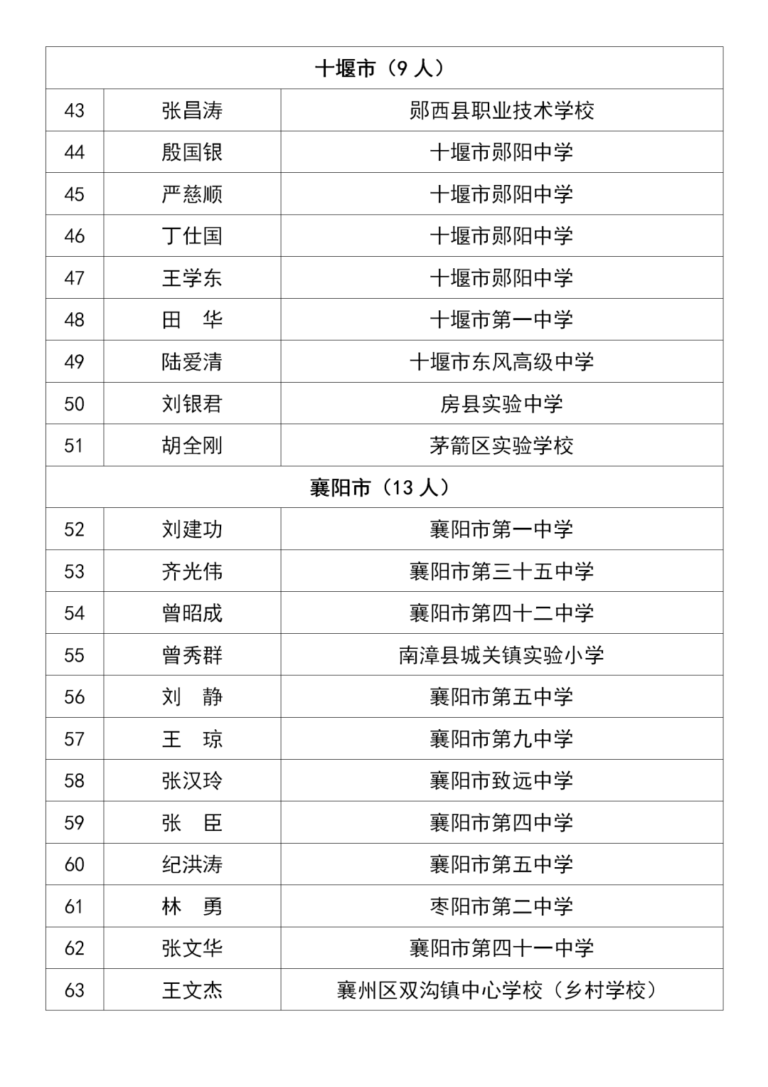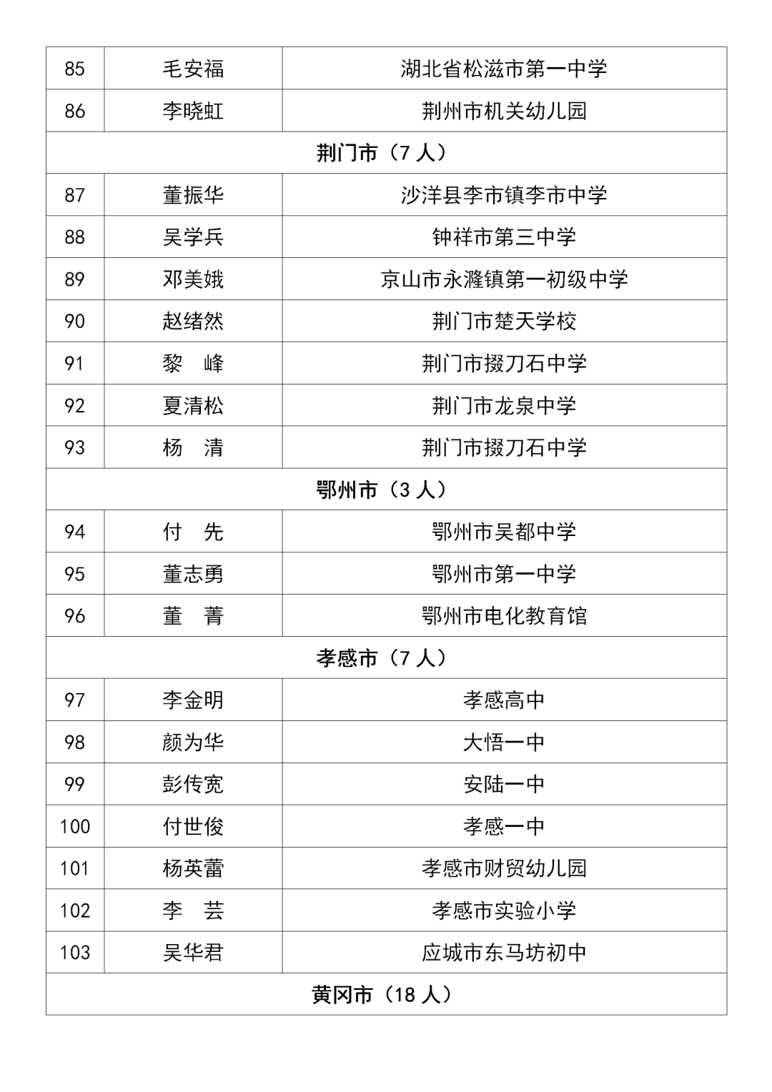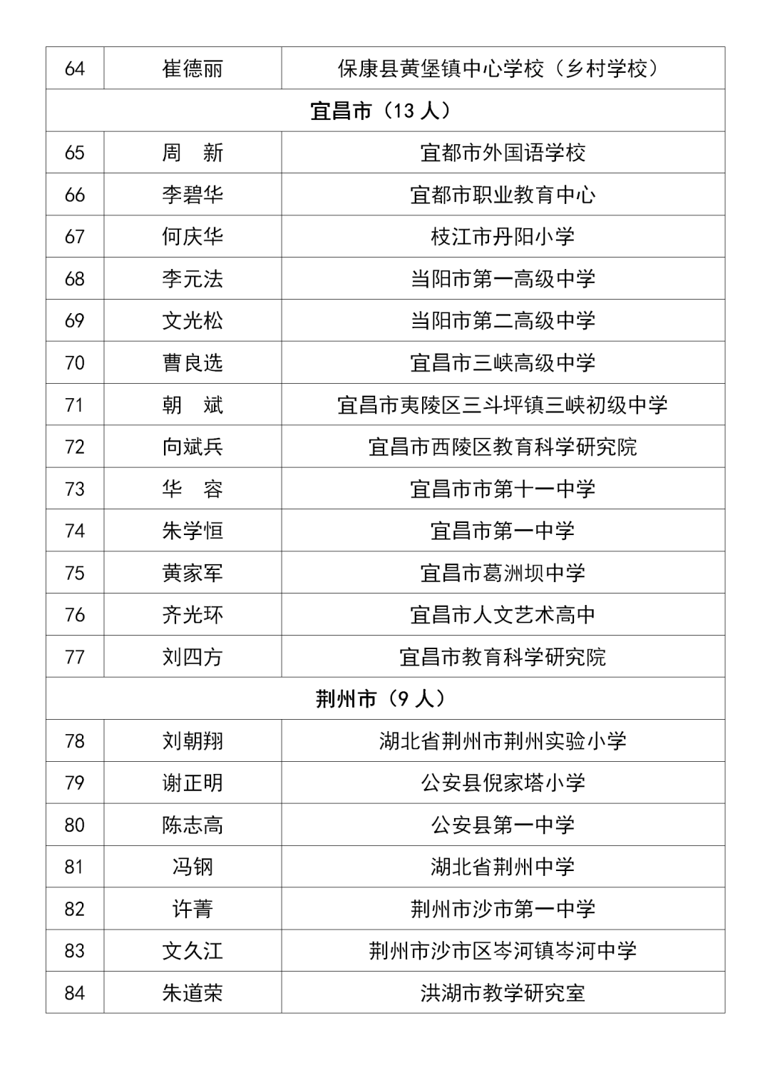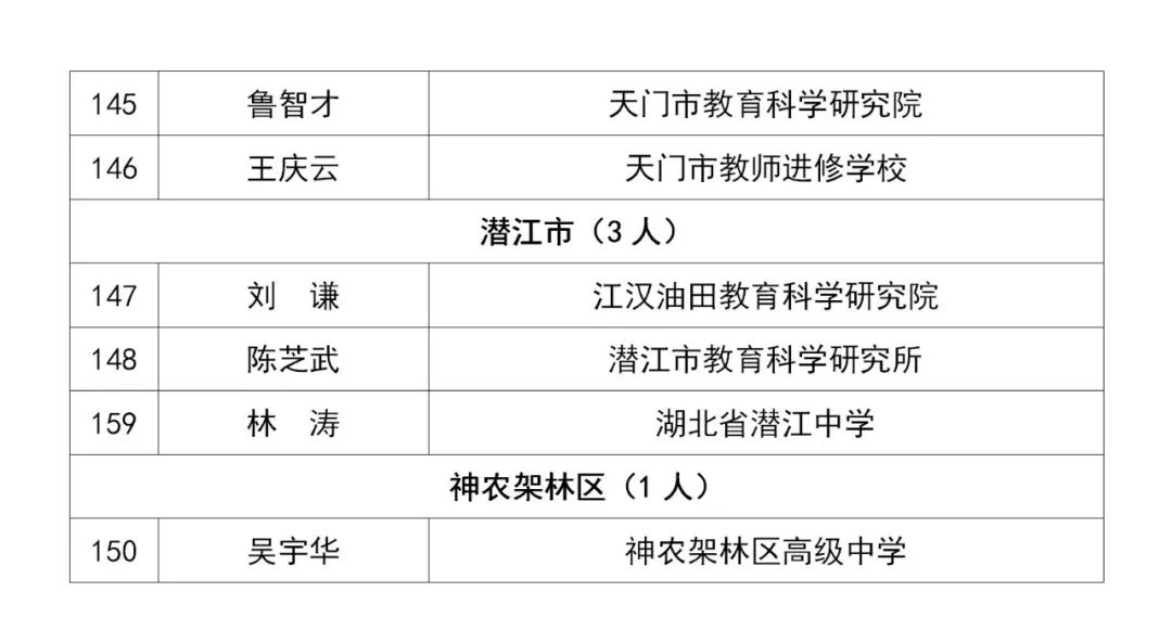 根据湖北省各中小学教师高级职务评审委员会评审结果,经公示和审查,并报人力资源社会保障部、教育部备案同意,湖北省职改办近日下发任职资格文件,批准费素梅等150人具备中小学正高级教师职称。