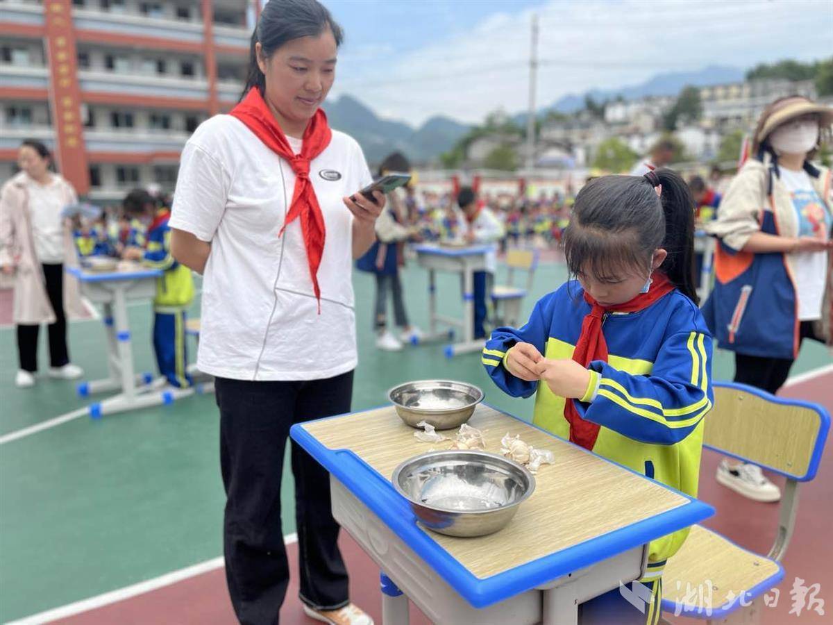 湖北日报客户端5月17日讯(通讯员李玉桥、蔡晓慧)5月16日上午,恩施市金子坝街道红庙小学的操场上热闹非凡,赛场上6位选手正在进行剥大蒜比赛。场外的观众们奋力呐喊助威,空气中弥漫着浓烈的大蒜气息。这是红庙小学为了进一步培养学生的动手、动脑和生活实践能力,举行的首届“我是劳动小能手”生活技能大赛。