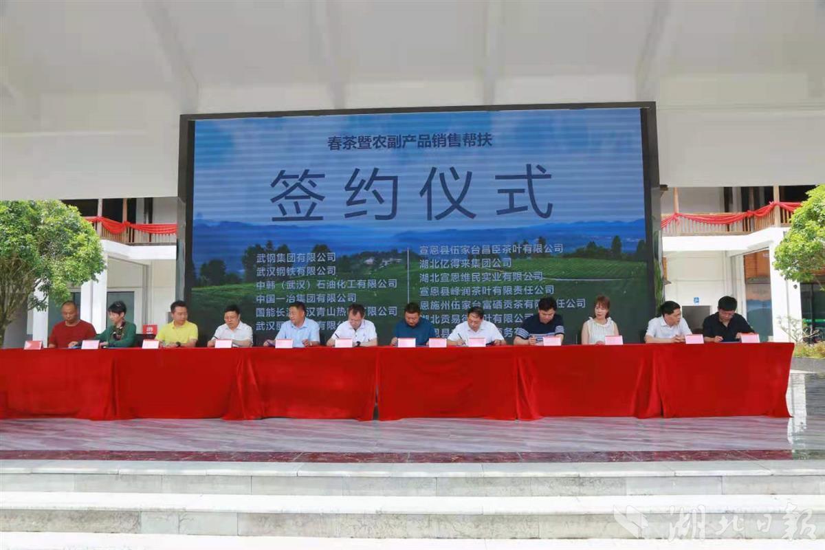 随后,在恩施硒茶交易大市场举行的签约仪式上,考察团各大企业分别与宣恩县茶企、电商企业、旅游企业等8家公司签订春茶采购、职工(劳模)疗休养帮扶意向书,切实助力宣恩春茶销售,进一步推动宣恩文旅康养融合发展。