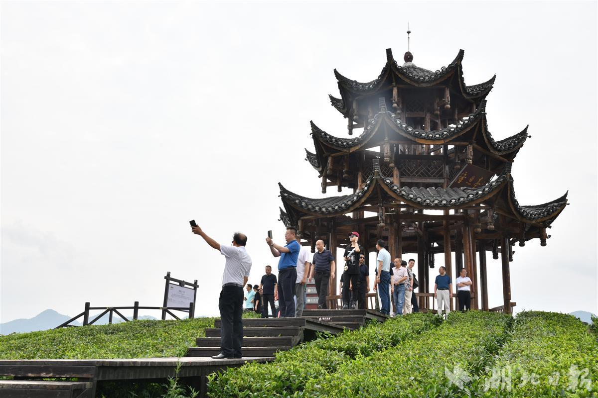 考察团先后来到宣恩县珠山镇东门关村、沙道沟镇两河口村、李家河镇金陵寨村、万寨乡伍家台村、椒园镇黄坪村,实地了解研学民宿发展、中国土家泛博物馆(彭家寨)项目建设、现代农业种植基地发展、茶旅融合发展及乡村振兴示范村建设等情况。