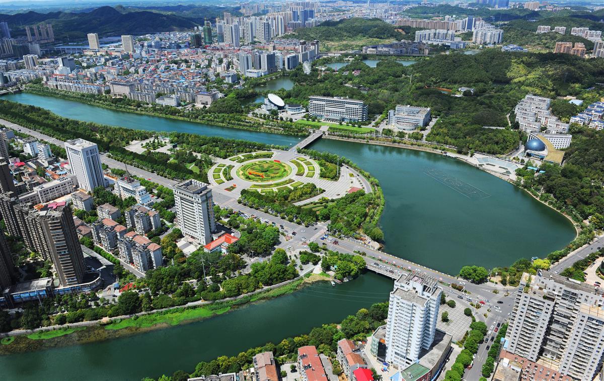 自然生态公园城市长啥样?9月中旬,湖北日报全媒记者乘坐直升机,从空中俯瞰咸宁,秀美淦河穿城而过,让这座城市更加灵动。