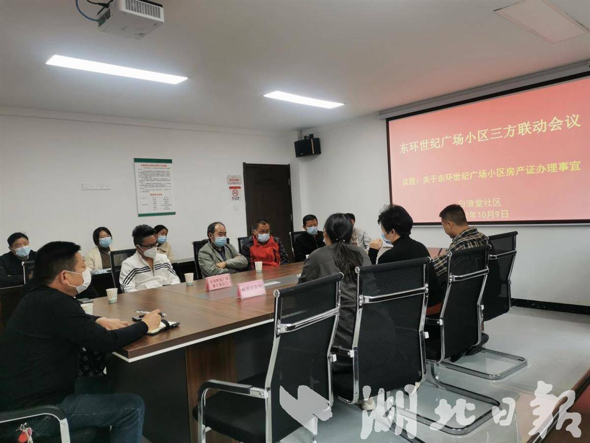 群众利益无小事。2019年起,白浪堂社区在区房管局大力支持下,召集小区业委会、物业、业主代表等召开联席会议10余次,顺利推动解决了小区电改、高空摄像头安装、停车泊位规范管理等问题,但房产证办理的问题,因开发商资金不到位还是未能如期办理,小区业主怨声载道,并因此拒交物业费,成了白浪堂社区解决民生问题的一道难题。