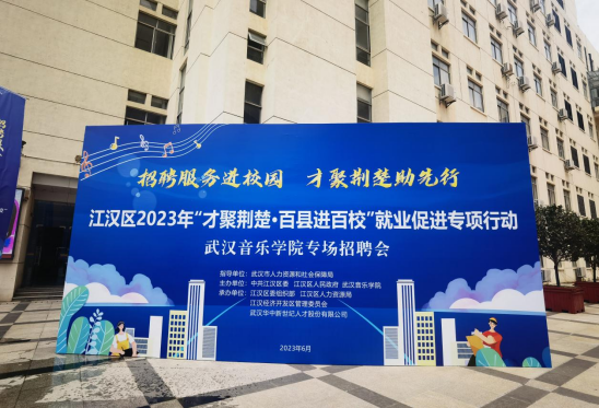6月13日,由市人力资源和社会保障局指导,江汉区委组织部、区人力资源局、江汉经济开发区管理委员会联合承办的江汉区2023年“才聚荆楚·百县进百校”专场招聘会走进武汉音乐学院。