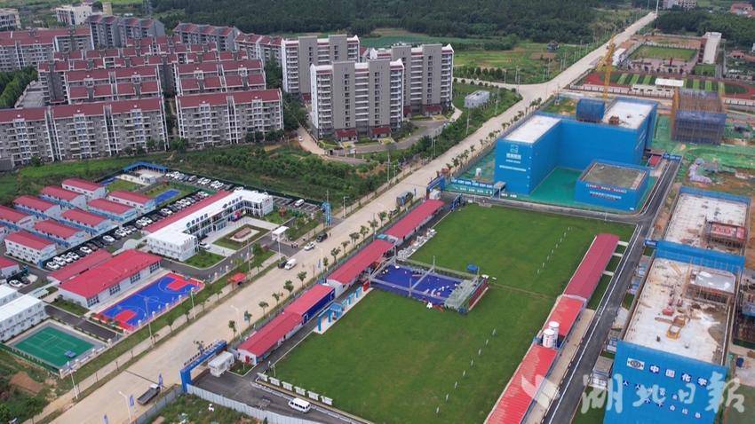 一墙之隔的武穴职业技术教育中心产业园校区施工也进展顺利,综合教学楼已经完工,两栋实训楼已完成了70%的工程量。