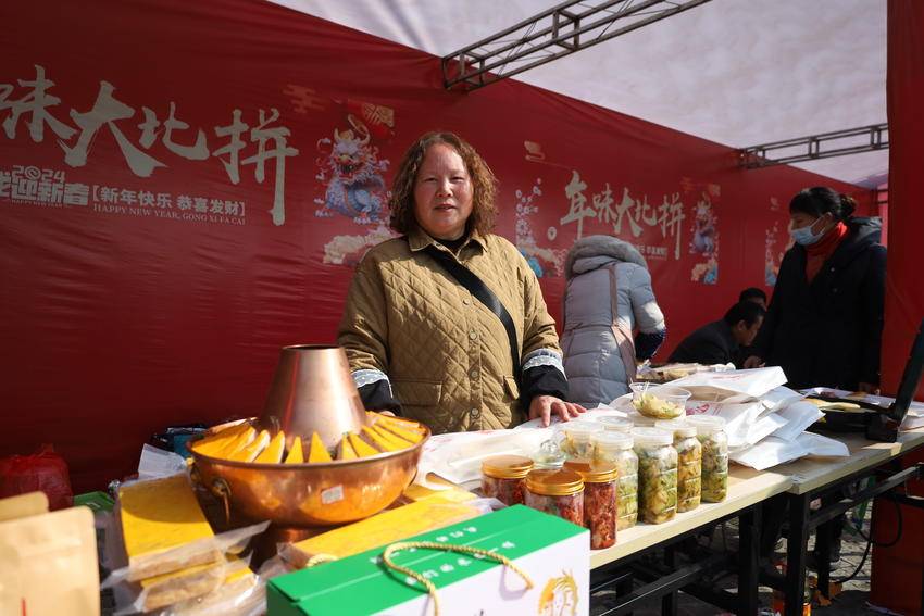 除了文艺演出,“年味大比拼”也是本次活动的人气环节。来自远安7个乡镇的14名手工艺达人各显身手,制作鸡蛋糕、冲菜、米面粑粑等极具远安特色的美味进行比拼,现场群众化身“美食评委”,品尝后通过扫码投票,评选出“最具人气奖”的年味儿食品。最终,洋坪镇谭菊英制作的远安鸡蛋糕和河口乡邹春芳制作的远安冲菜获得“最具人气奖”。