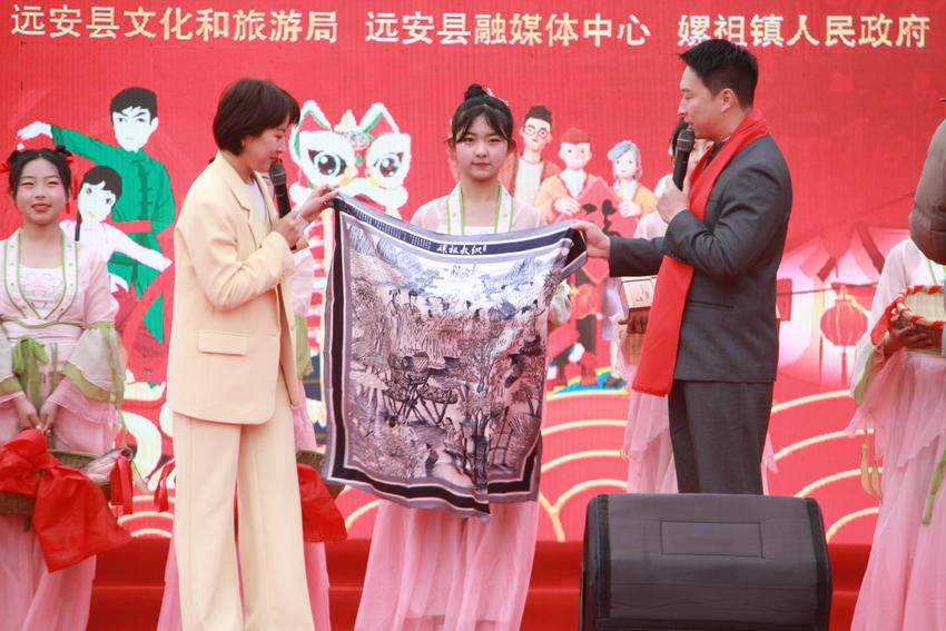 演出中还设置了三轮抽奖环节,每轮抽出50名幸运观众奖,将代表喜庆与吉祥的大草鱼带回家。与此同时,远安特色美食香菇、冲菜、鸡蛋糕与特色产品垭丝和磷矿石等也一齐登台展示,凸显了诗画远安物华天宝的独特魅力。