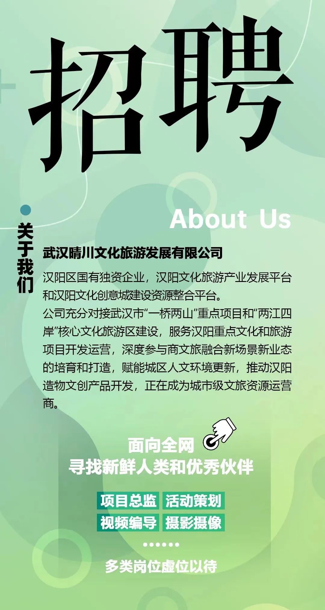 希望你是互联网新媒体新锐平台(抖音、小红书、视频号)重度用户,具备敏锐的新闻触觉,擅长微小情绪捕捉放大。更希望你是生活及网络素材的收藏家,网络热点与汉阳结合的段子手。还希望你在同样的城市里有不一样的想法,能拥有再多一点的创意、更大一些的脑洞。
