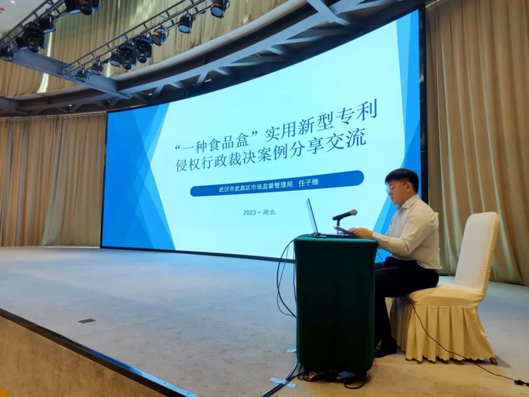 ▲在长江中游三省及省会城市知识产权行政执法典型案例评析交流会上进行交流发言