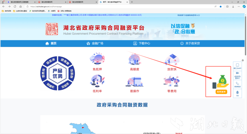 “政采贷”服务旨在解决中小微企业融资难题,有资金缺口的企业,在中标政府采购项目后,可通过湖北省政府采购网进入政采贷线上融资平台,凭借中标通知书通过在线注册,发起申请、金融机构查询中标信息并授信、线上签订贷款合同并放款、金融机构反馈融资信息并锁定回款账户四步即可完成办理;其线上服务模式,实现了政采合同和银企融资数据交互联通,具有财政成本降低、银行融资程序优化、企业办事流程便利等诸多优势,自平台上线以来,受到企业的一致好评。