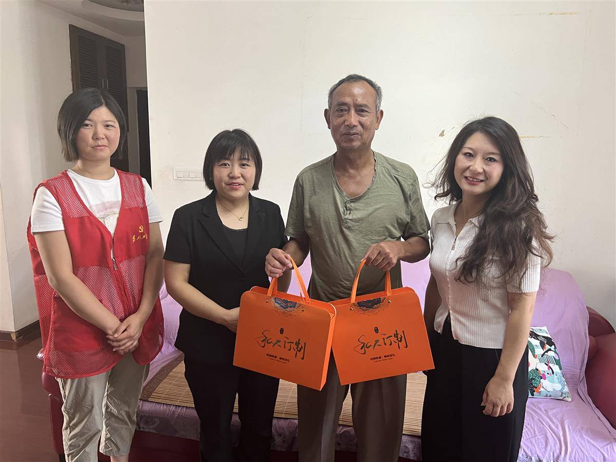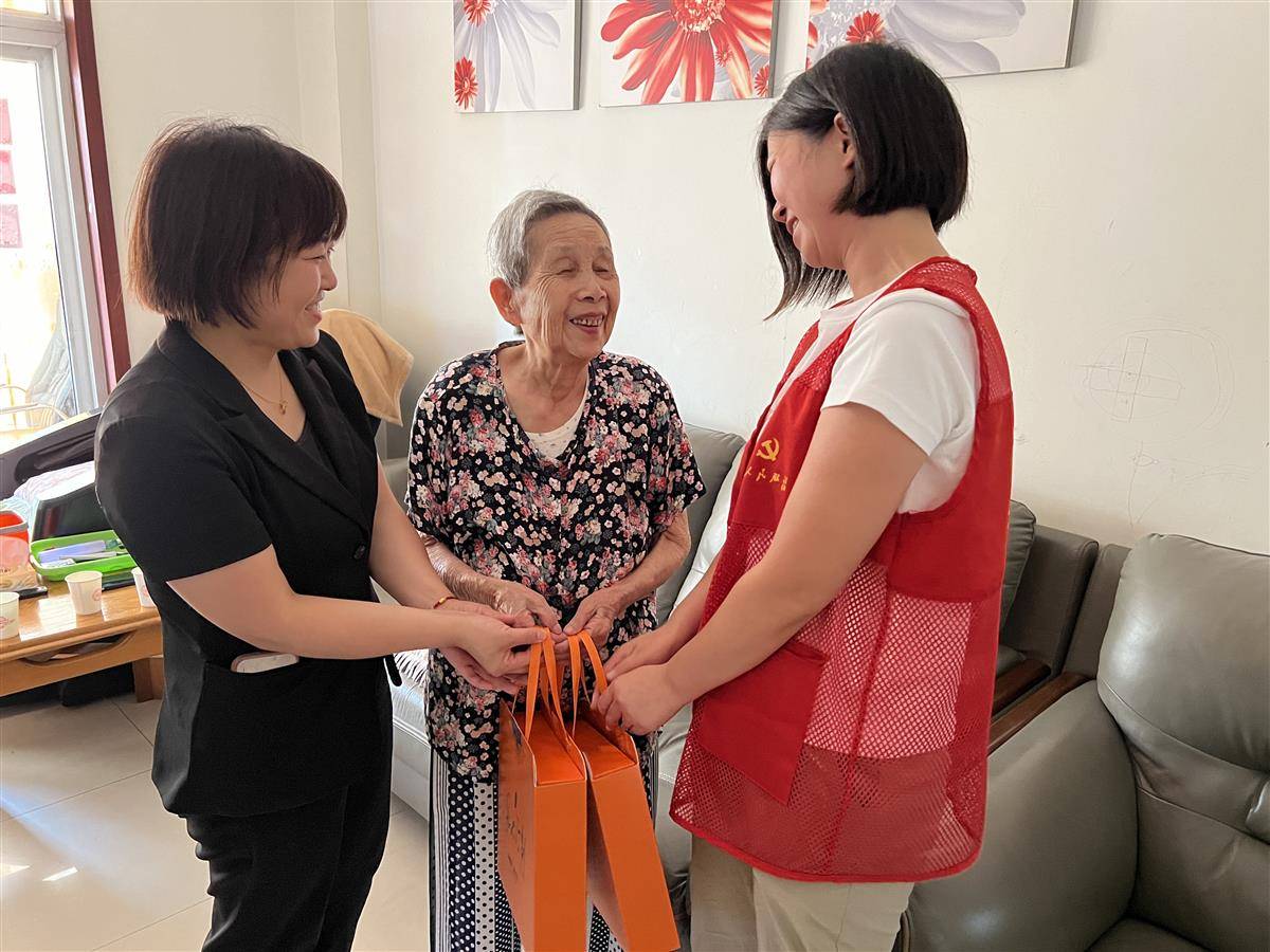 刘诗韵带着学生志愿者来到困难群众家中,把月饼递到他们手中,仔细倾听他们的困难与需求,传递着来自社区大家庭的温暖。