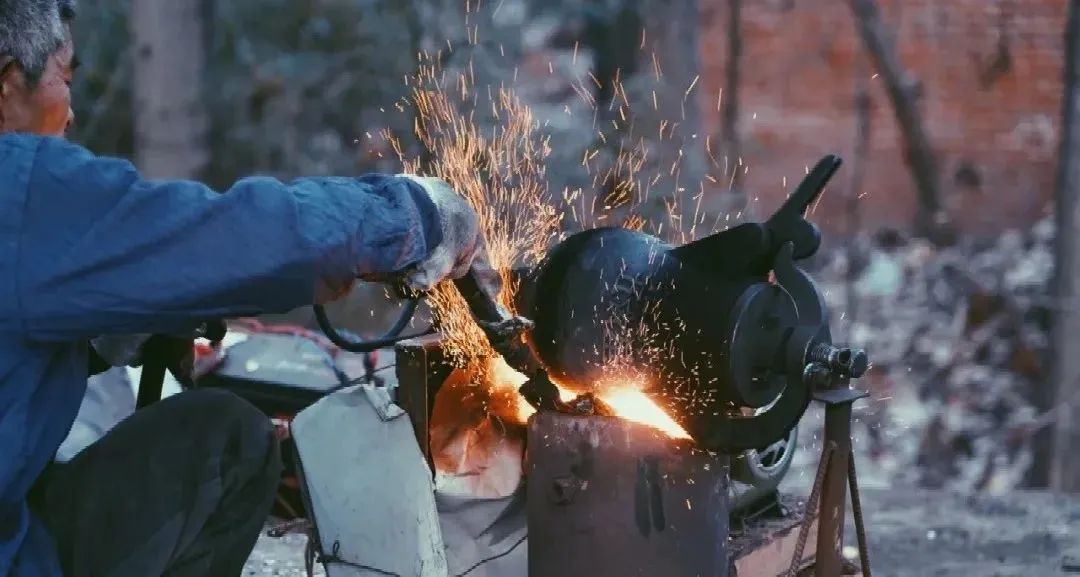 “炸炒米喽,炸炒米喽。”每当听到这样的吆喝声,就意味着年关将近了。村子里突然传来“嘭”的一声巨响,几个小孩一溜烟地,朝着村口方向直奔而去。我听到响声,也立马从后门溜出,跟在一众孩子后面跑。到了村口一看,果然有一圈人,围着炸炒米的师傅,看着他炸炒米。那地上,已有几户人家拿来了米,依次排在那里等着炸。炸炒米的陈师傅,就住在隔壁新沙村,和我们这里只有一村之隔,两个村互相通婚,随便一聊,便可圈出无数亲戚朋友。所以他一来就和乡亲们聊开了。 只见他一手拉着风箱,一手摇着炒米机,所谓的炒米机是一个生铁铸造的黑色大肚皮铁锅,放在支架上,下面炉火態熊燃烧,顶多一支烟的功夫,他便停止了操作。一看这架势,小孩们迅速向四面八方散去,用手捂住耳朵。此时的师傅,也会大喝一声“让开!”。围观的大人也很识相,知道接下来会是一次“大爆炸”。师傅先将铁锅取下,用一个黑色囗袋套住锅口,抓住扳手用力一扳,随着一声闷雷似的响声,口袋立刻鼓了起来。顿时空气里弥漫着一股浓浓的炒米香。那巨大的响声,震耳欲聋,响彻云霄,似乎震动了整个村庄。