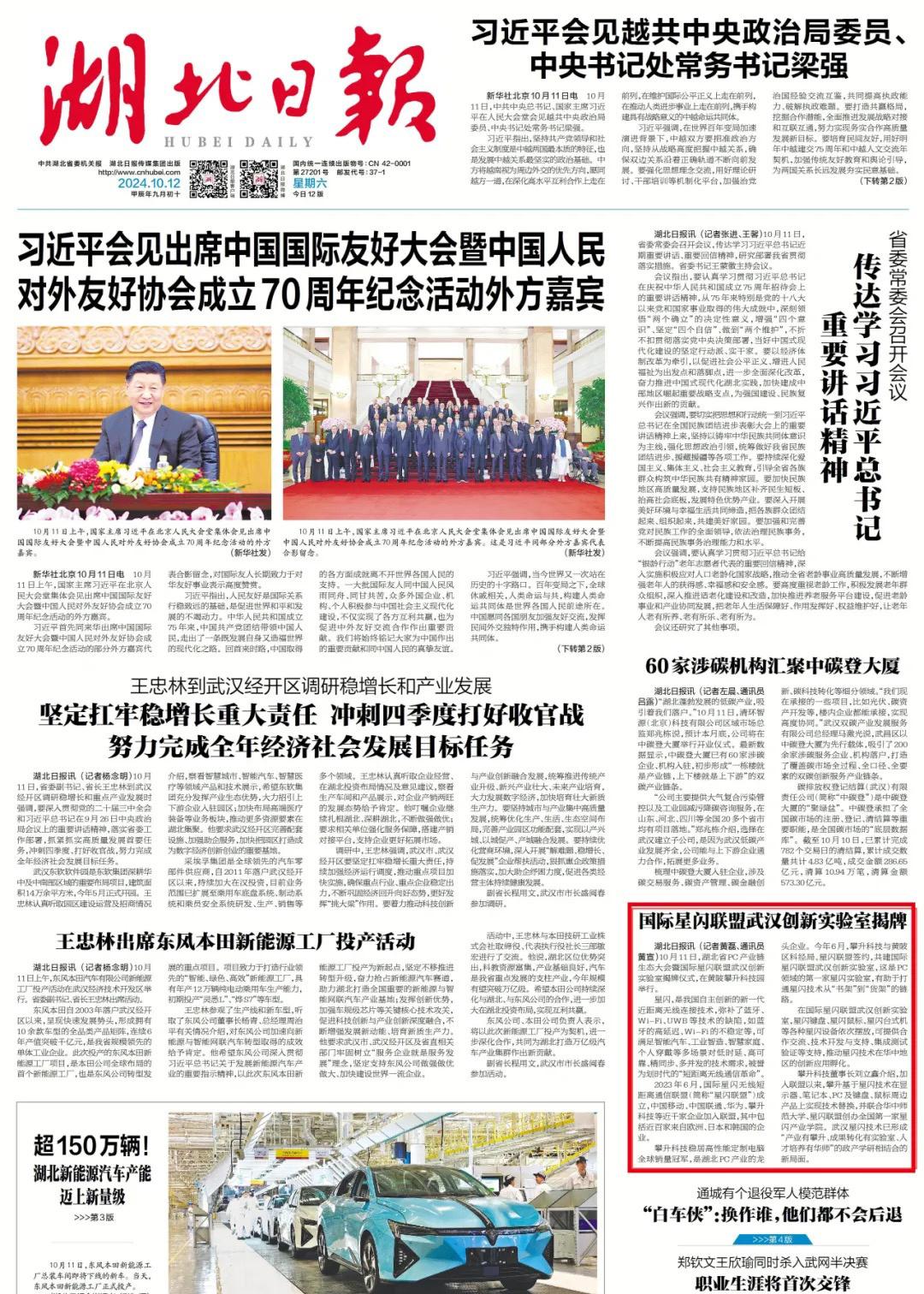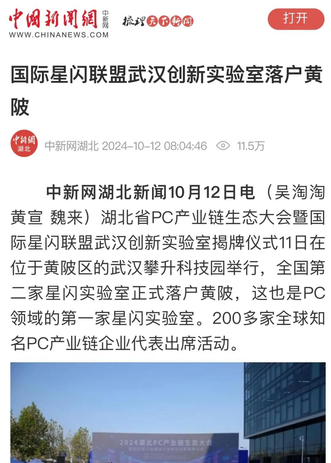 10月11日,湖北省PC产业链生态大会暨国际星闪联盟武汉创新实验室揭牌仪式在位于黄陂区的武汉攀升科技园举行,全国第二家星闪实验室正式落户黄陂,这也是pc领域的第一家星闪实验室。