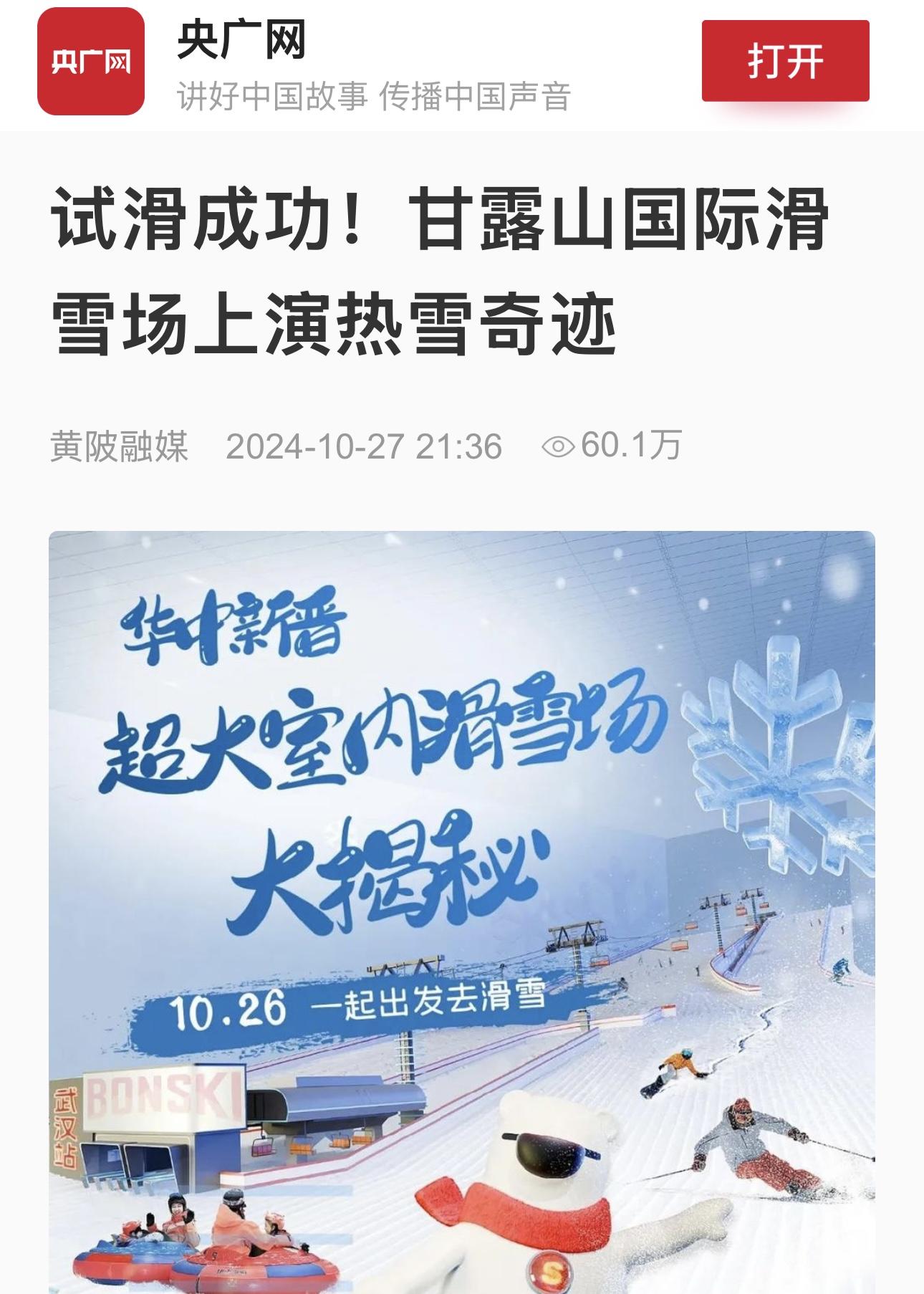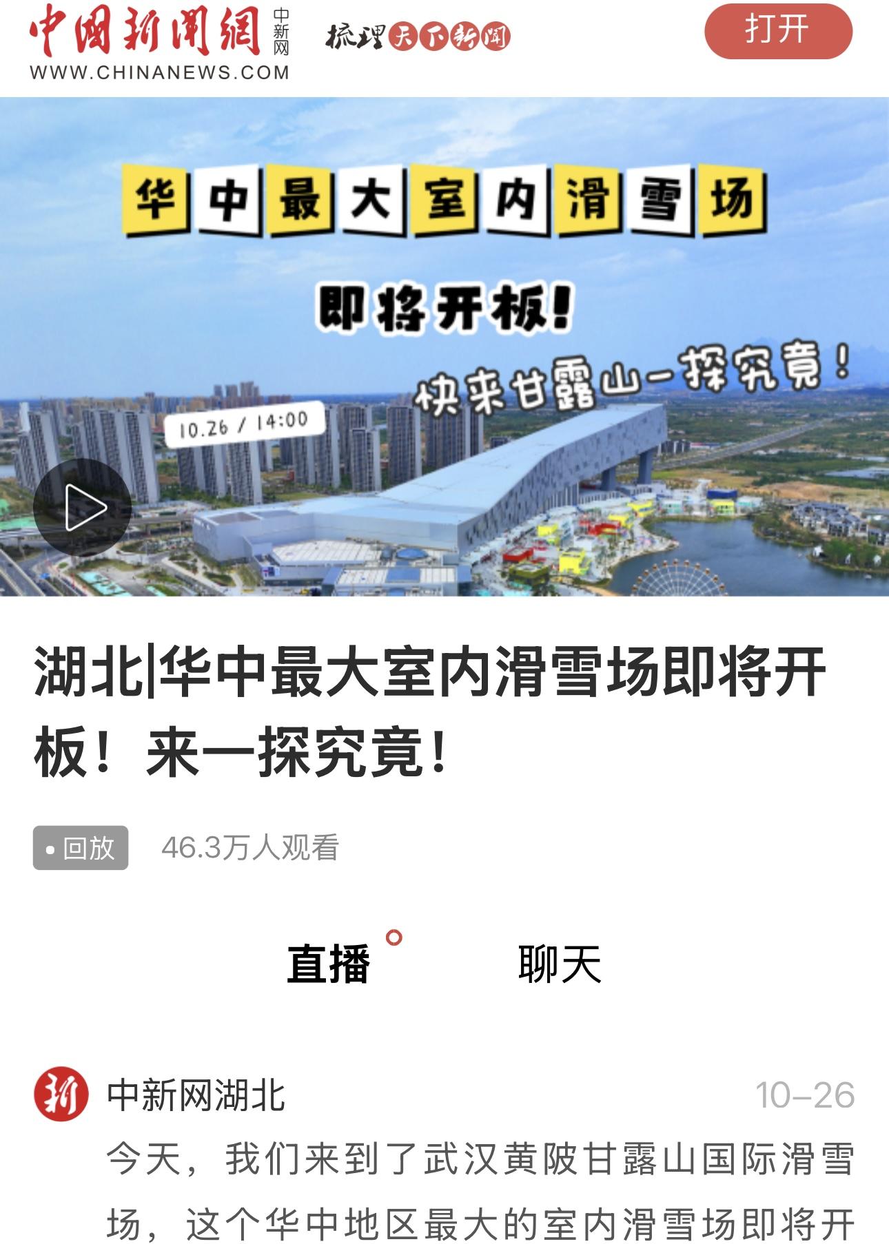 10月26日,备受瞩目的华中最大室内滑雪场——甘露山国际滑雪场成功举办首场公众试滑活动。来自全国各地的滑雪爱好者和资深雪友齐聚黄陂,获央广网、中新网等中央媒体聚焦。甘露山国际滑雪场将于11月8日正式营业,面向广大游客开放。