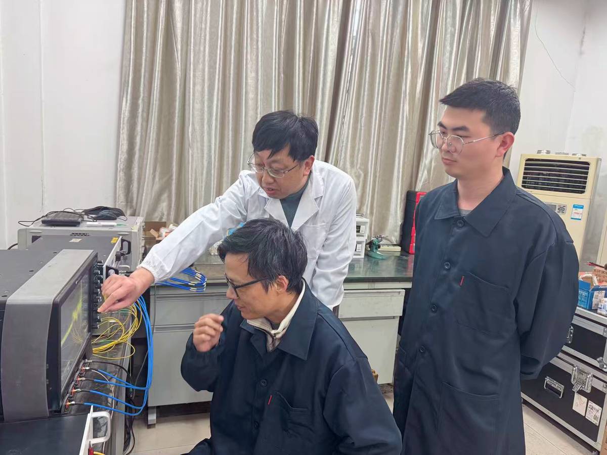 黄海军教授团队在实验室探讨(记者文俊摄)