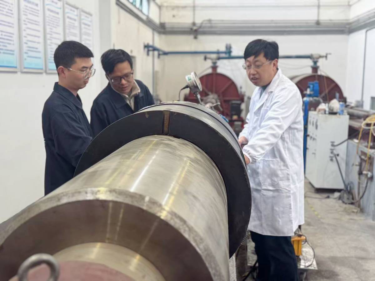 黄海军教授(右一)团队用二级轻气炮开展动高压实验(记者文俊摄)