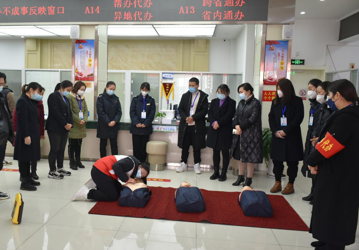 12月13日下午,随县政务服务和大数据管理局邀请县红十字会对政务服务中心工作人员进行基本急救和AED使用培训。培训老师现场演示了除颤仪(AED)操作流程,并就如何识别施救对象、如何安全有效施救,为工作人员讲解胸外按压的部位、频率、深度等内容。