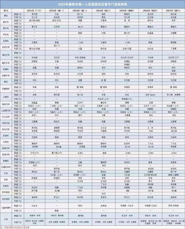 3、专家门诊:2023年1月21日—1月24日,专家门诊暂停,其余时间均按医院规定坐诊。专家门诊见排班表。