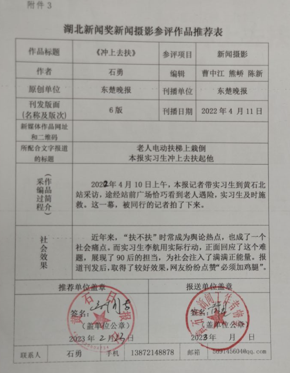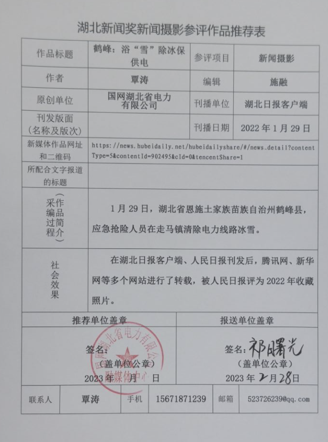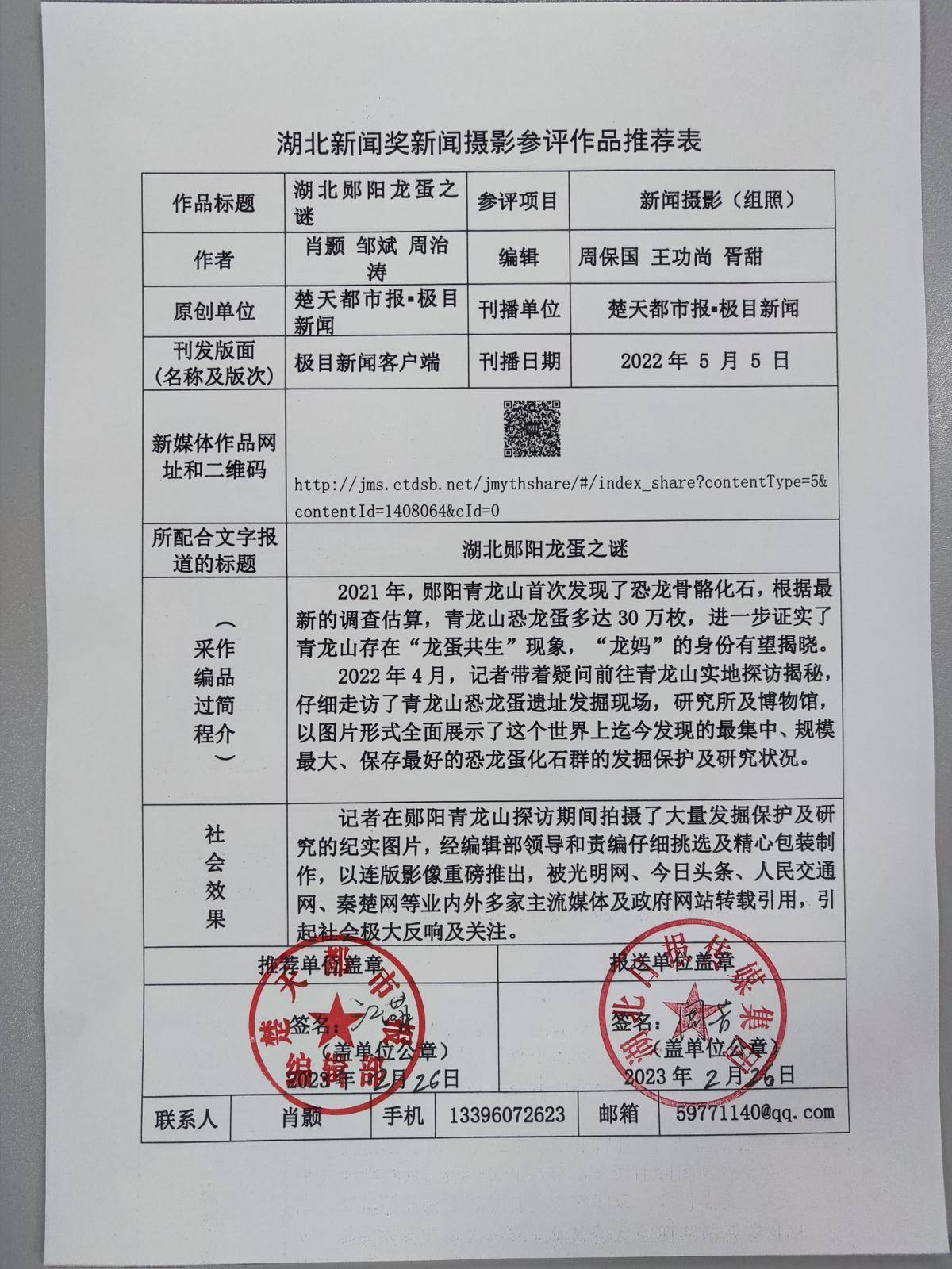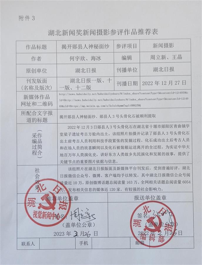 现将作品参评材料进行公示,公示时间为2023年3月14日至2023年3月20日,在此期间,如对公示作品有异议的,请与湖北省新闻摄影学会联系,联系电话:027-88567399。