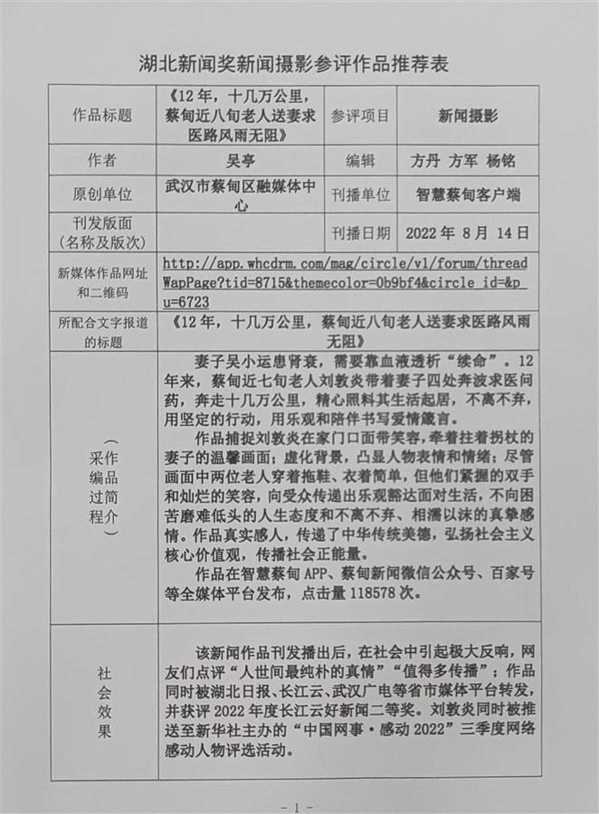 12年,十几万公里,蔡甸近八旬老人送妻求医路风雨无阻
