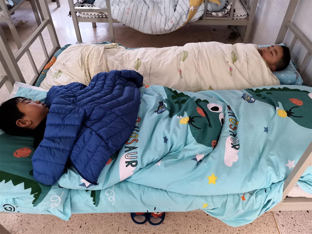 “我们每个班班额在30-40人,教室相对宽松,能够摆放午睡桌椅。”该校负责人表示,一到中午,学生们自己调节好椅子的靠背高度,盖上午睡毯,老师们拉上窗帘,关闭护眼灯,教室里宁静惬意,学生们都能睡个好觉。