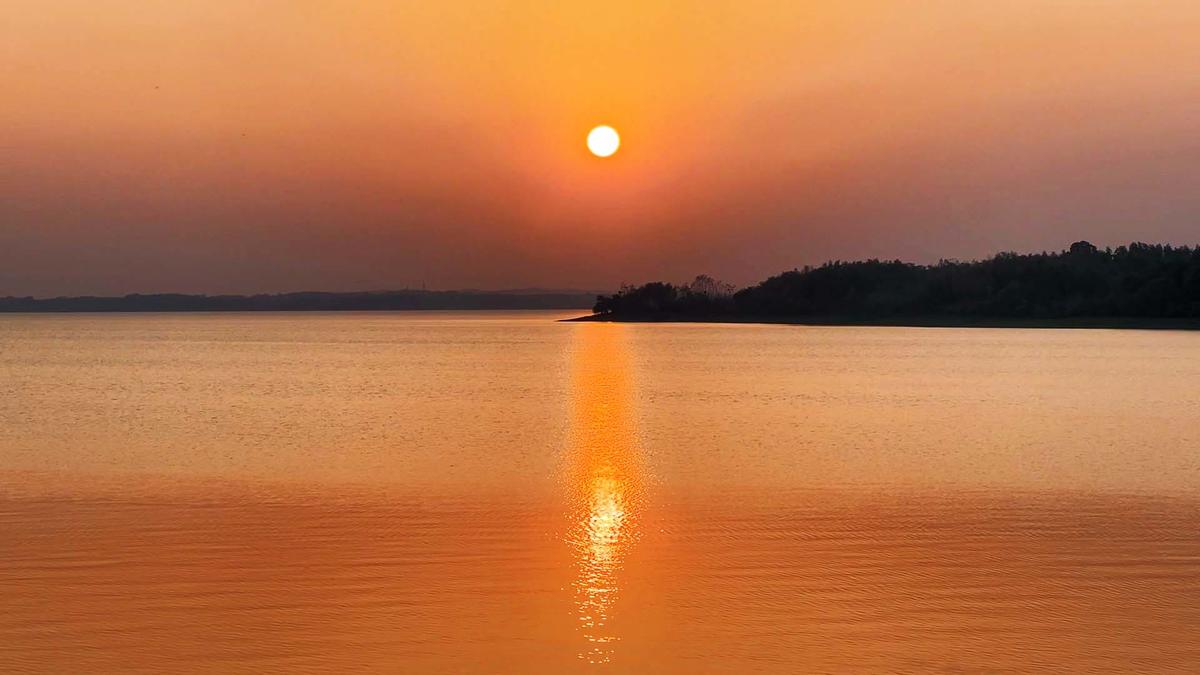 天晴的日子,月上山头,清辉溢溢,黄盖湖披上了神秘的夜纱。虫儿被月光蛊惑,有的弹琴,有的鸣唱;鱼儿被月光撩拨,追逐唼咥;月出惊山鸟,鸟儿噪幽林。湖面上,几点渔火摇曳,和天上的星子遥相辉映。这月夜的黄盖湖,在虫儿、鱼儿、鸟儿的歌唱里愈发清静、神秘了。