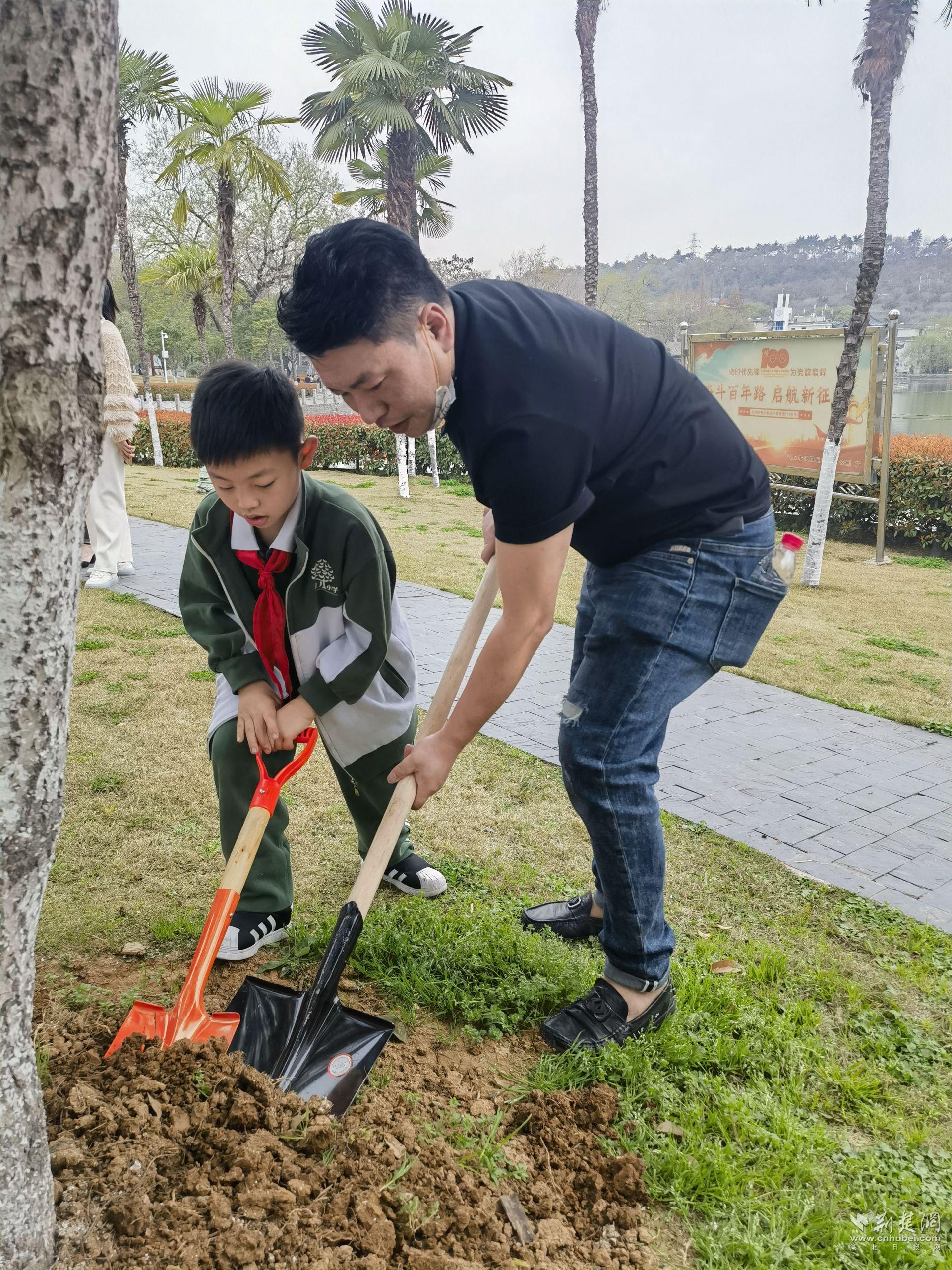 草绿花开,春意正浓,又到了一年一度的植树节,3月10日,武汉市汉阳区楚才小学与汉阳区园林局携手,在莲花湖花园组织了“长成一棵树——践行二十大 争做好少年”亲子公园大课堂活动。