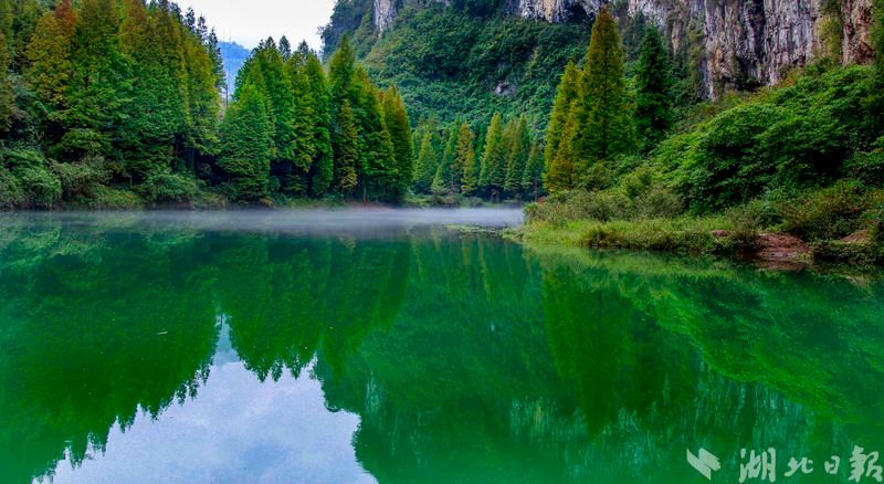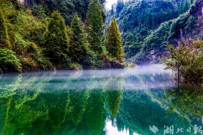 这静静地水出了向阳坪水库,沿着密林深处的小溪又一路静静地下到山底,再沿着绿树掩眏的村庄,静静地蜿蜒向前。在钟灵村和桂花村美丽富集苗木丛林中穿行,悄无声息的来到小河集镇,再向前流过小河水杉林,然后悄无声息的钻入地下,从源头到此处的整个行程,就一个字——静!