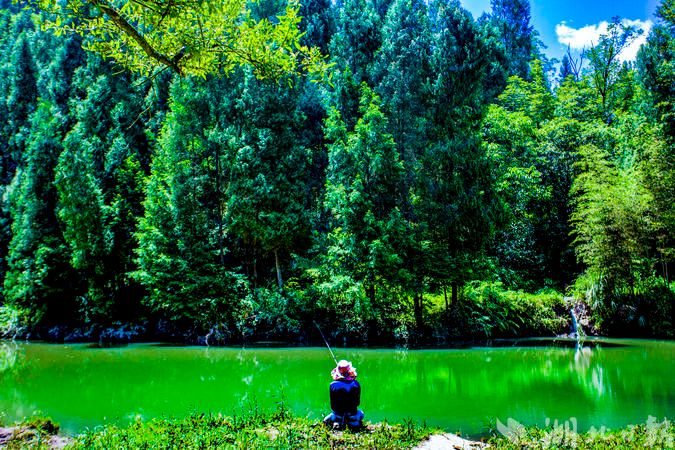 绿到远远望去已分不清哪里是群鸟翻飞的树林哪里是潺潺流动地河水;绿到水边民居在树林中伸出的一只小小的红瓦檐角在很远的地方就能一眼看清;绿到屋顶的炊烟无视蓝天的召唤飘飘袅袅久久不愿离去;绿到鸟儿飞错了方向差点冲进水中与游鱼为伴!