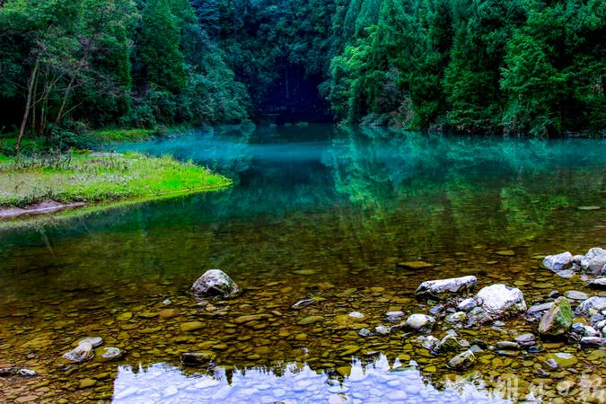 后江河水从洞脑壳流出来,在一个很大的水潭中集聚,潭水由深到浅,十分清幽,幽静到风吹不动水流不动云飘不动!幽静到人走不动鸟飞不动,一切都想同心一道留下来,在这清幽幽的水潭里,洗去疲惫倦意,浴出欢愉快意,留下深深爱意,醉在潭中,醉在心里!