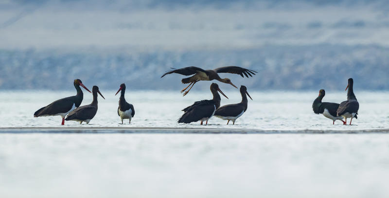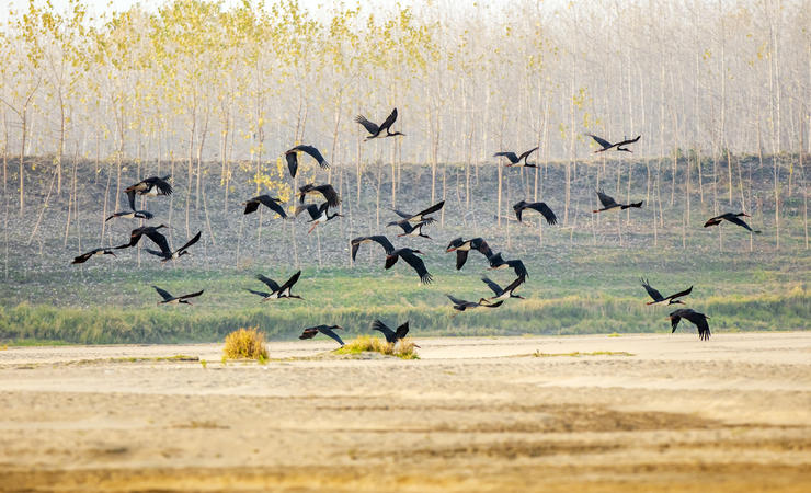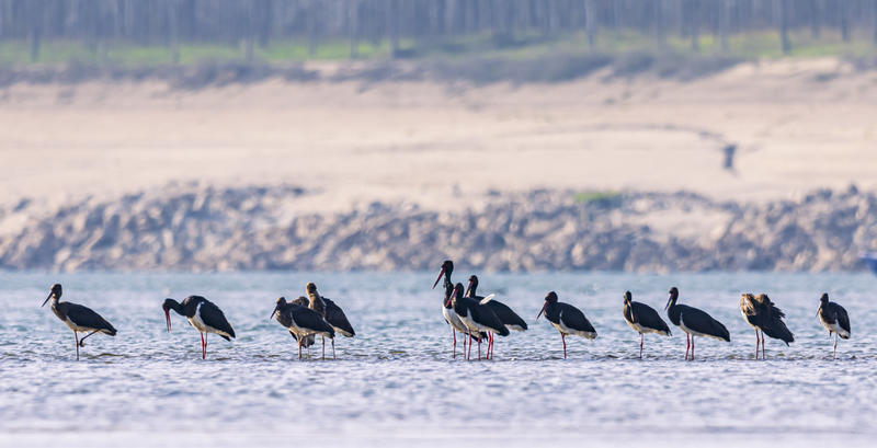 据了解,黑鹳对于栖息地很挑剔,要求水体食物必须丰富,水质必须清澈。能够吸引它们停留去觅食,是石首长江江域生态改善的生动见证。通过石首野保站和野保志愿者的持续监测,黑鹳数量也在逐年增加,2021年11月在南口镇白沙洲区域监测到黑鹳有近120只。近两年,在长江石首段多区域都有发现黑鹳活动。