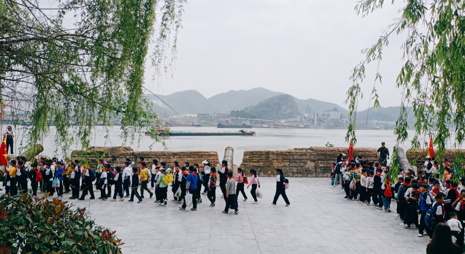 随后,同学们参观半壁山古战场纪念馆、古炮台,了解关于半壁山的历史文化以及曾在半壁山发生的著名战役等知识,并沿着山道踏寻爱国将领足迹,感受爱国主义精神,还有序开展了各种拓展活动。