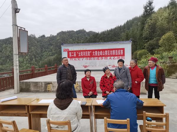 在金峰山村初赛会场,民歌传承人、专业老师、部门负责人和参赛者面对面沟通交流,共同探索太阳河民歌的特殊魅力和文化内涵。